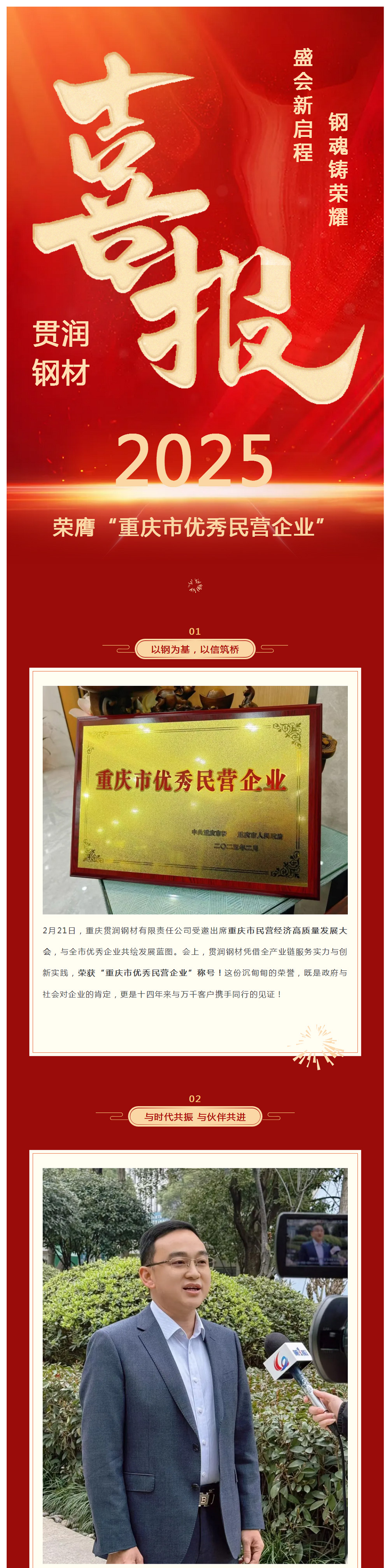 閃耀時刻|貫潤鋼材亮相重慶市民營經(jīng)濟高質量發(fā)展大會 榮獲“重慶市優(yōu)秀民營企業(yè)”