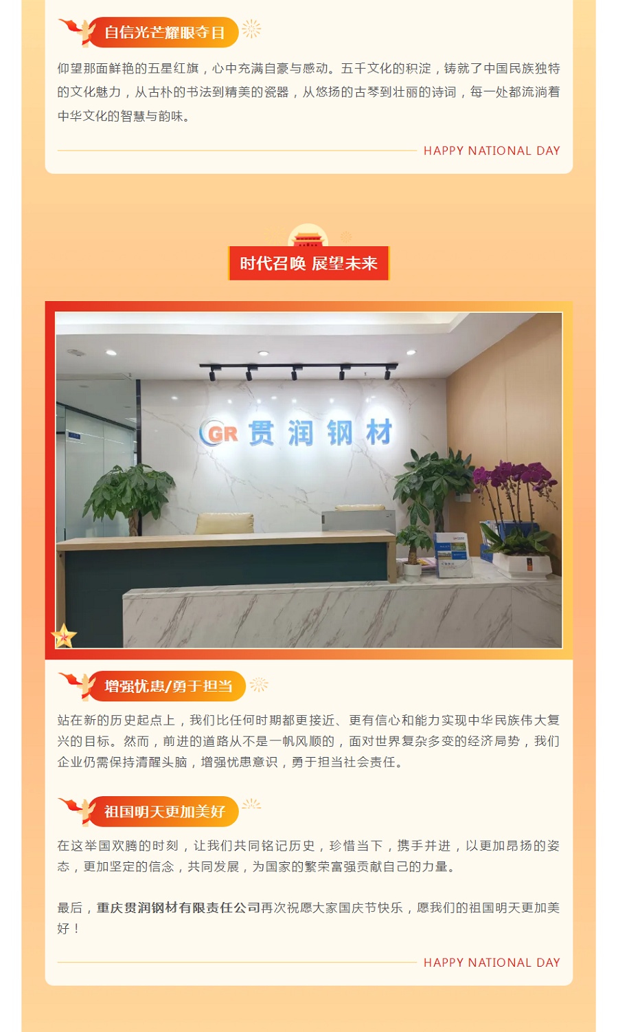 喜迎國慶,盛世華誕——貫潤鋼材祝福祖國繁榮昌盛。眾生?;劬d長!